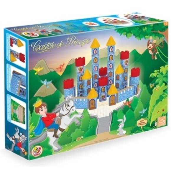 O castelo do príncipe é um brinquedo de construção. Elaborado a partir de bloquinhos de madeira M.D.F e composto também com peças de plástico para a confecção dos telhados e mirantes.